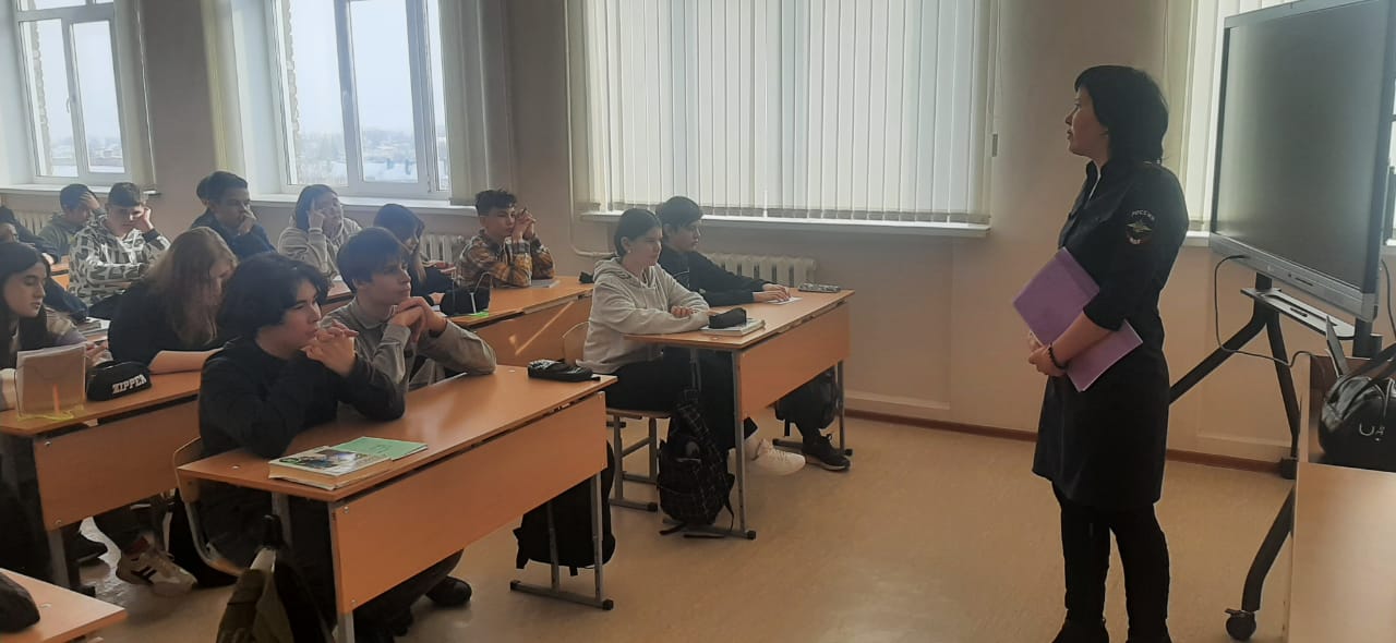 С целью профилактики правонарушений и воспитания правовой культуры молодежи, 14.02.2023 г.. в нашем школе состоялась встреча 8-классников с сотрудником полиции. Встречу провела юрист Отдела МВД по Белебеевскому району майор полиции Шагидуллина Гузель Заитовна.